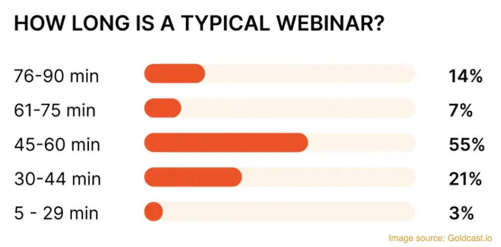 Live webinars continue to dominate, with the majority of companies favoring this format to engage audiences directly. Pre-recorded webinars also hold their ground for their flexibility in catering to diverse time zones and streamlined production processes. The average webinar length remains around 60 minutes, striking a balance between depth and audience attention spans.