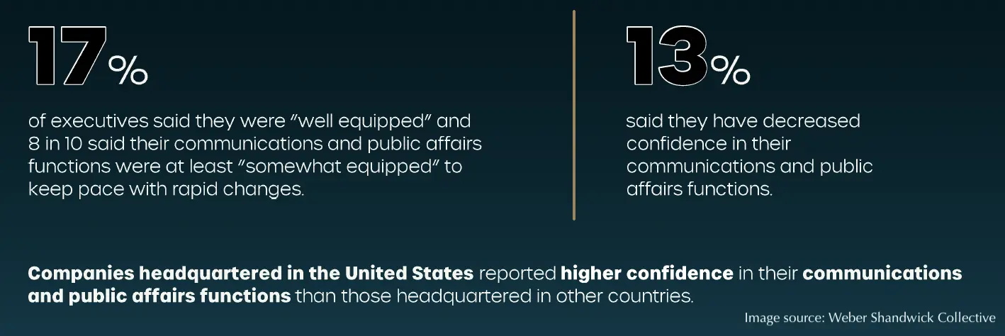 A new report from The Weber Shandwick Collective highlights a growing disconnect between CEOs and their communications teams. Only 17% of CEOs feel their comms and public affairs teams are fully equipped to handle today’s rapid economic, geopolitical, and cultural shifts. While 70% of global executives expect volatility to increase in 2025, just 27% report increased confidence in their communications functions over the past three years.