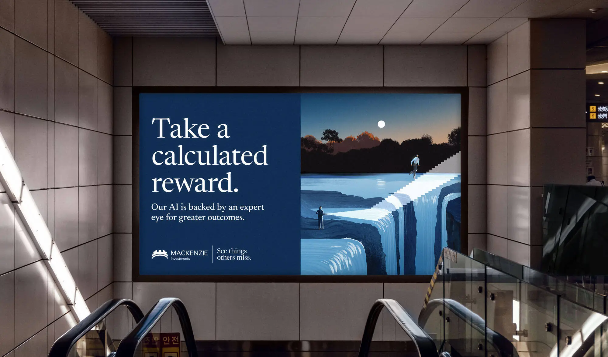 Mackenzie Investments is back with the second phase of its "See Things Others Miss" platform, replacing the literal financial imagery that dominates the category with a surreal, high-contrast animated world of portals, shifting landscapes, and ladders to the sky. Created by agency The Garden, the 2026 campaign shifts from the broad awareness push of last year's brand relaunch into product consideration territory, bringing specific investment capabilities to life through visual metaphor.
