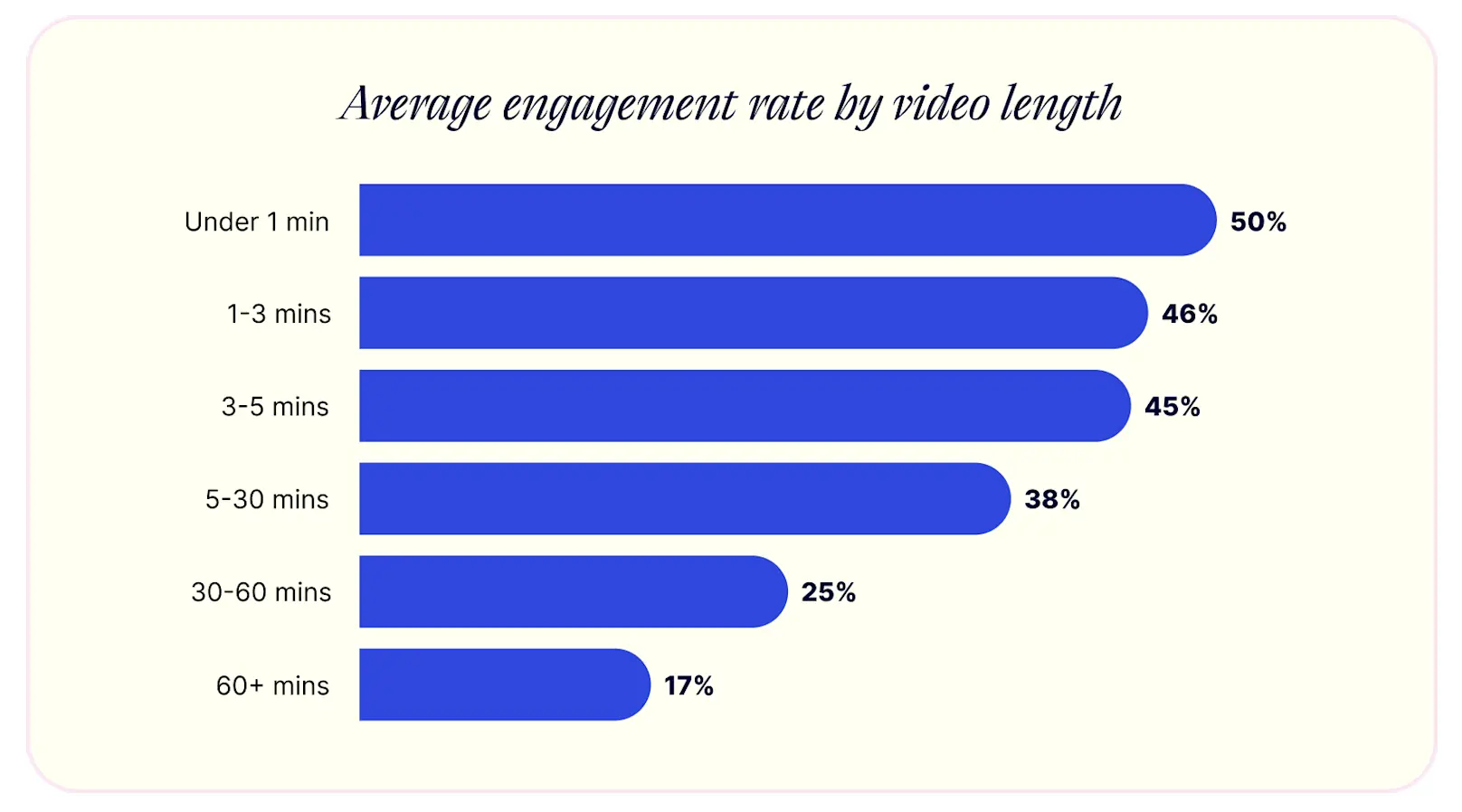 Shorter videos tend to have higher engagement rates, but longer videos convert better—especially when lead gen forms appear at the end. How-to and educational videos hold attention best, while webinars and original series drive the most conversions. AI use in video creation has more than doubled year over year, especially in pre-production and editing.