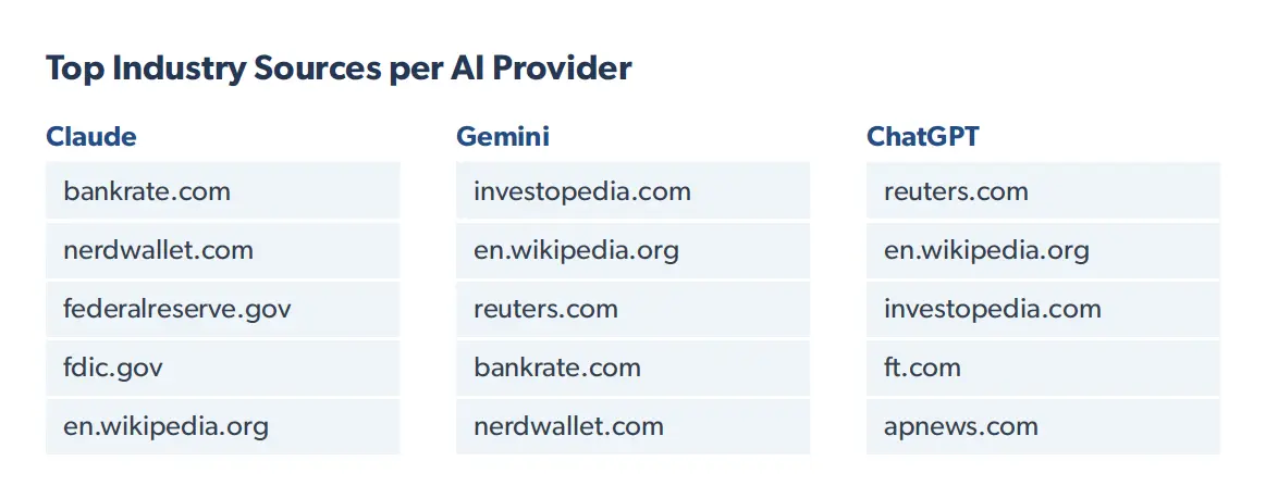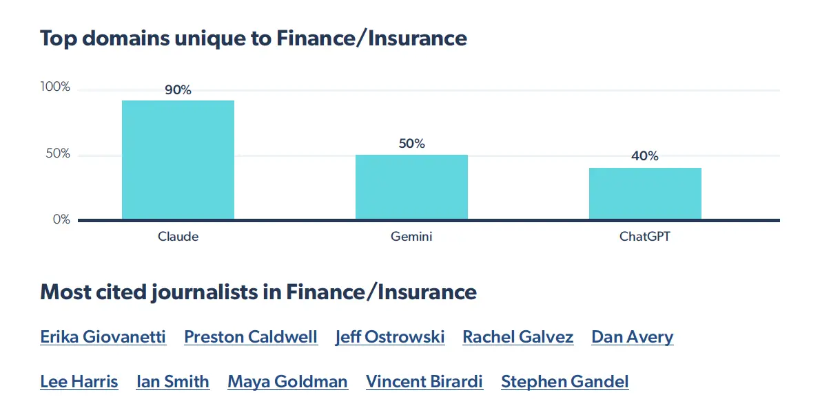 Claude surfaced 90% unique domains in its top 10 finance sources.