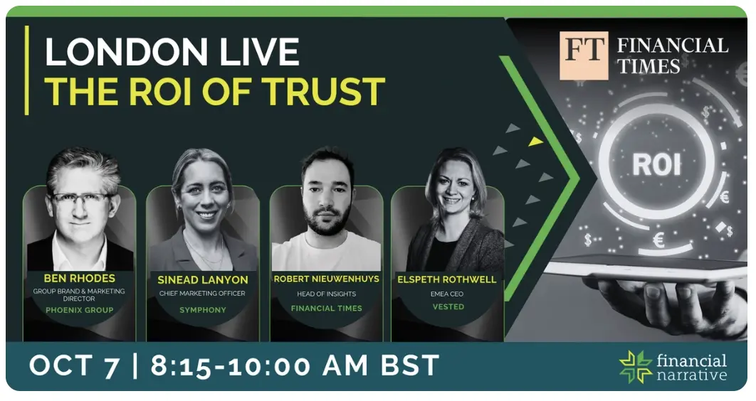 In partnership with The Financial Times, Financial Narrative is proud to host a presentation and panel discussion where the FT delves into their latest research paper, Bridging the Trust Gap, written in partnership with the IPA. The Financial Times, alongside industry experts, will share evidence-backed strategies to connect trust to bottom-line results and position marketing as a key driver of commercial success. Details here >>>