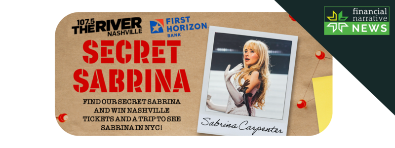 First Horizon Bank is teamed with iHeartMedia’s 107.5 The River on “Secret Sabrina,” a citywide scavenger hunt that awards tickets to Sabrina Carpenter’s sold-out Nov. 5 Bridgestone Arena show, plus a trip to a Madison Square Garden date and $250 in merch.