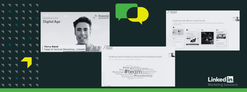 Highlighting research results and new strategies aimed at reaching and engaging institutional investors, Financial Narrative had the pleasure of hosting an exclusive webinar, led by Terry Rand of LinkedIn alongside Wensy Antoli, Senior Creative Strategy Consultant and Kyri Lilikakis, Senior Insights and Data Analyst at LinkedIn. The discussion highlighted actionable strategies and tactics to identify and engage with the most relevant investors and illuminated the power of compelling visuals, persuasive messaging, and authentic storytelling in effectively communicating value propositions.