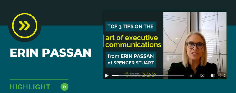 Erin Passan, Spencer Stuart expert in executive communication, graced the Financial Narrative boardroom with a sold-out event, sharing her techniques for making an impression and connecting with your audience. Here's a clip of her top 3 tips.
